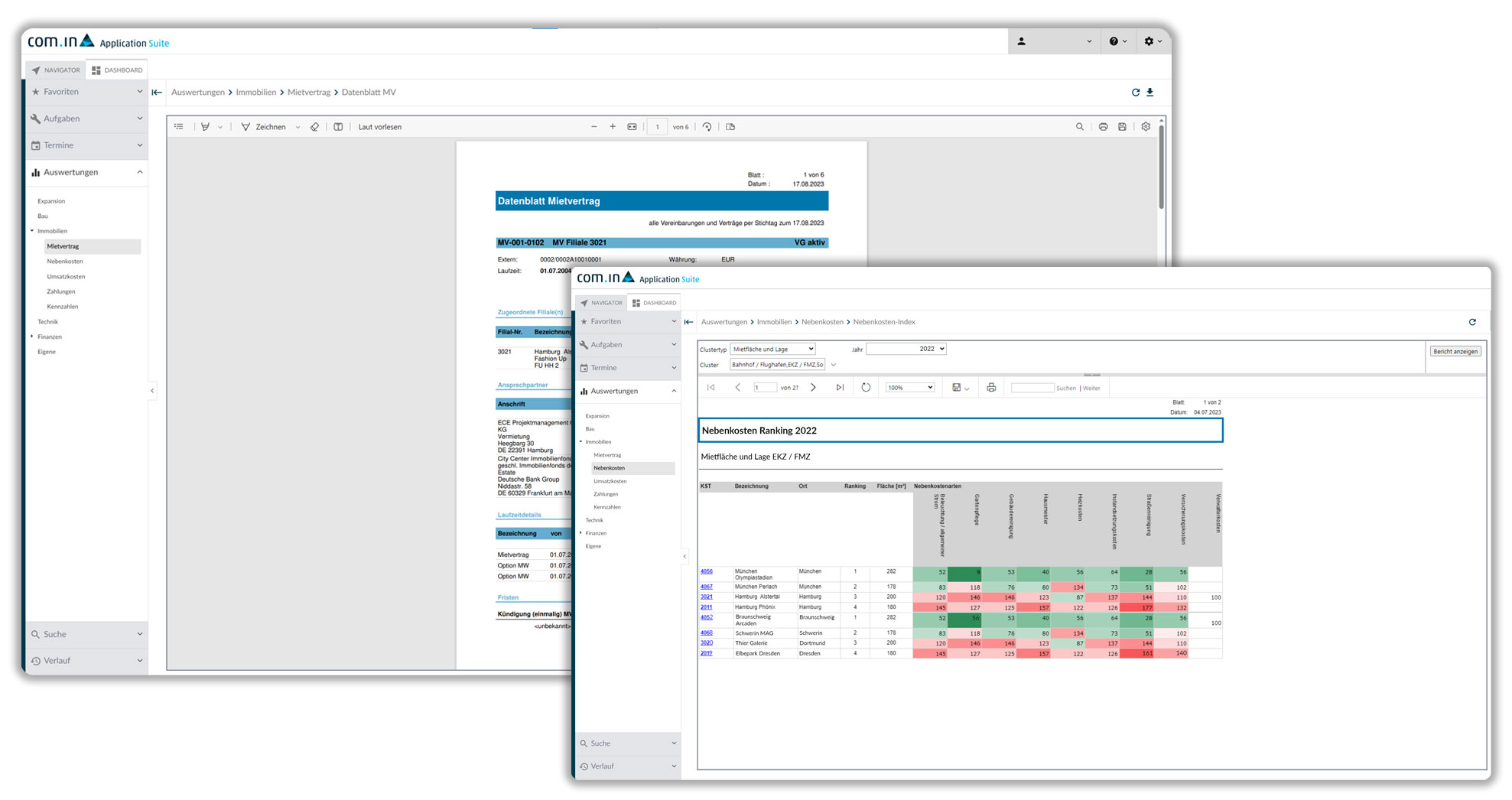 Die Softwarelösung zum Immobilienmanagement bietet ein leistungsfähiges Vertragsmanagement inklusive umfassender Fristen- und Kostenverwaltung – bei maximaler Transparenz zur Beurteilung mietvertraglicher Risiken.